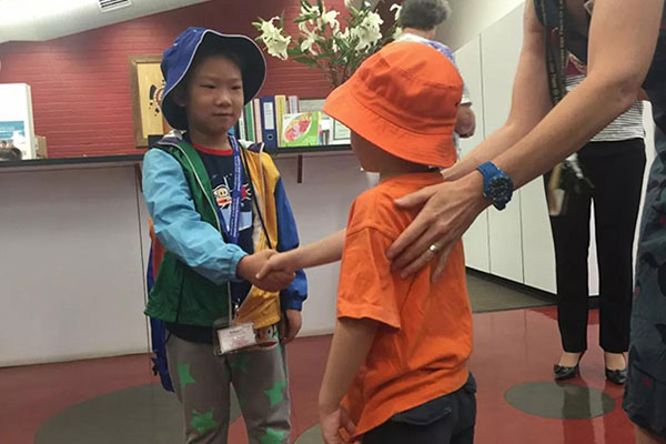 為了讓小朋友盡快融入環(huán)境,學(xué)校為我們的每個孩子都精心安排一位悉心周到的當(dāng)?shù)匦』锇椋瑥恼n上到課下,小伙伴都會不離左右,有任何問題都可以隨時(shí)提供幫助,所以我們的小朋友通常幾個小時(shí)后就跟當(dāng)?shù)氐膶W(xué)生愉快的互動了。