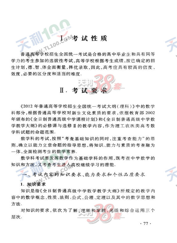 近日,教育部考試中心編寫的《2012年普通高等學校招生全國統(tǒng)一考試大綱》(以下簡稱《大綱》)出爐,詳細介紹了今年高考各學科的考試范圍、命題思想、試卷結(jié)構(gòu)等,并提供示范題型。