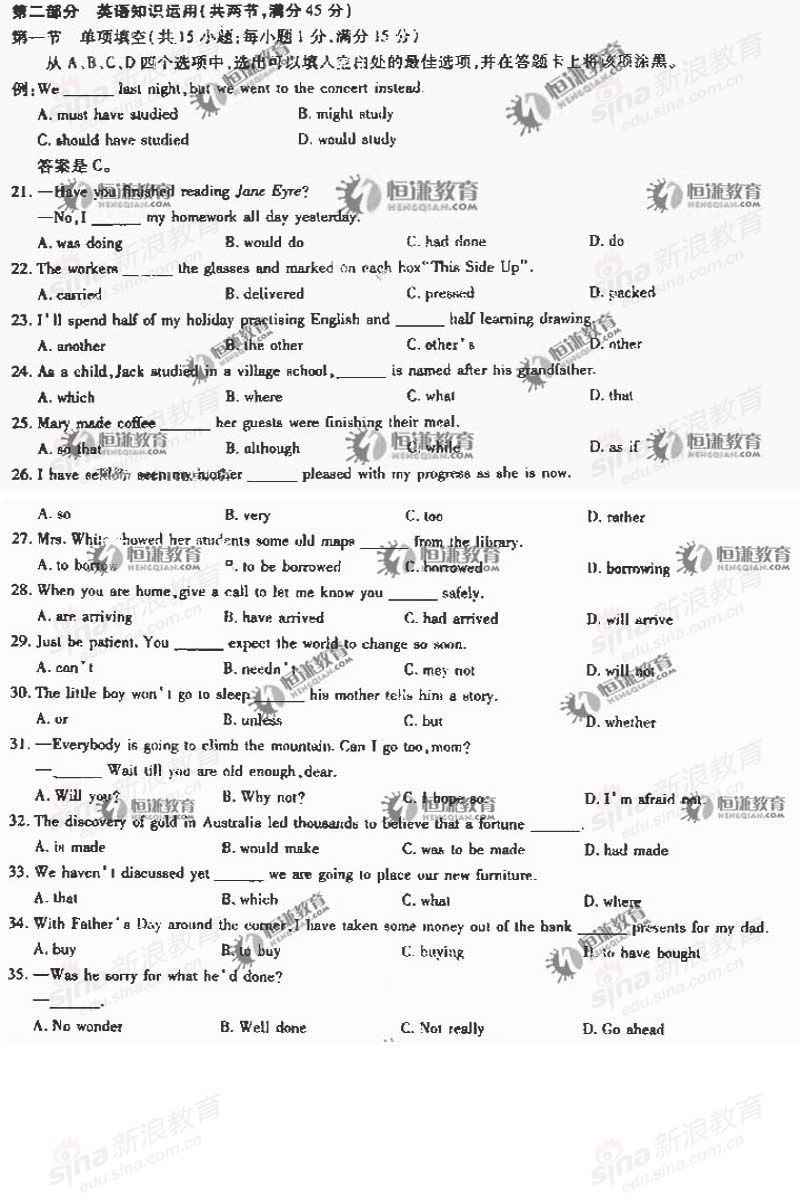 2010年高等學校全國統考英語(新課標全國卷)試題(3)