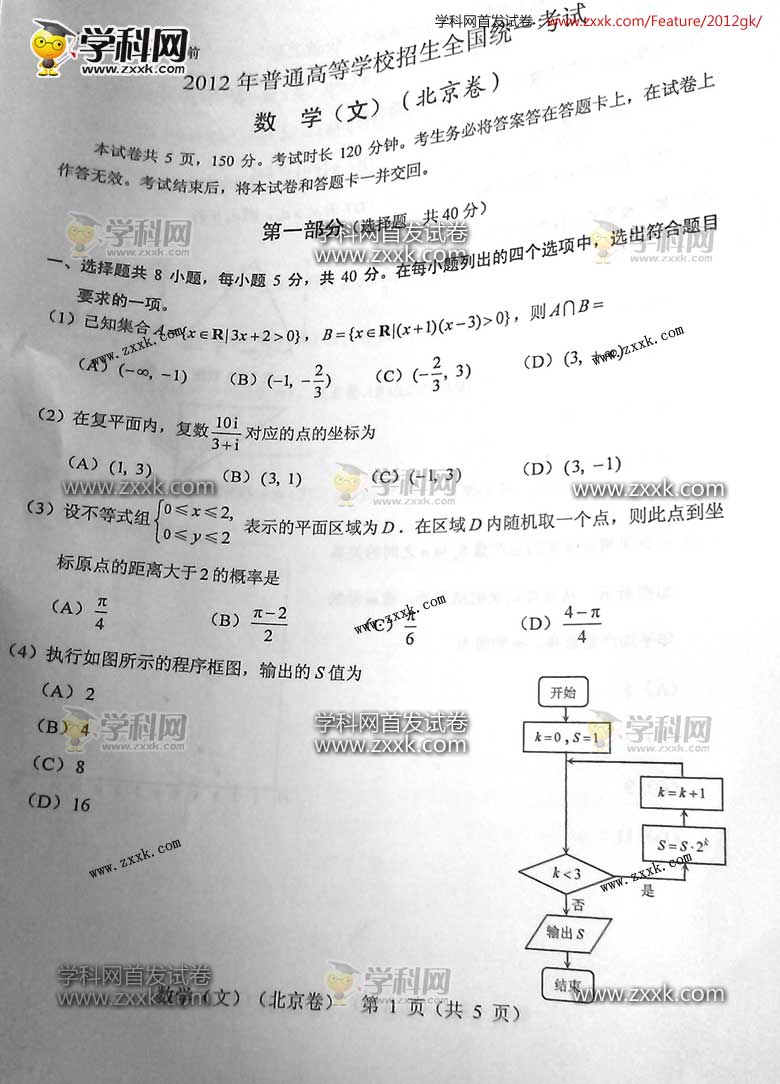 2012年北京高考數學(文)真題及答案發布