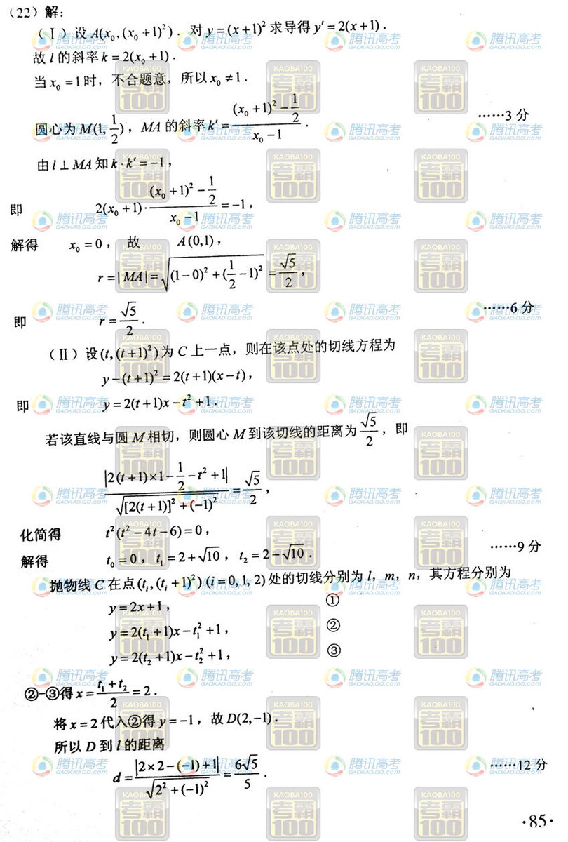 2012高考文科數學真題及答案(大綱全國卷)(10)