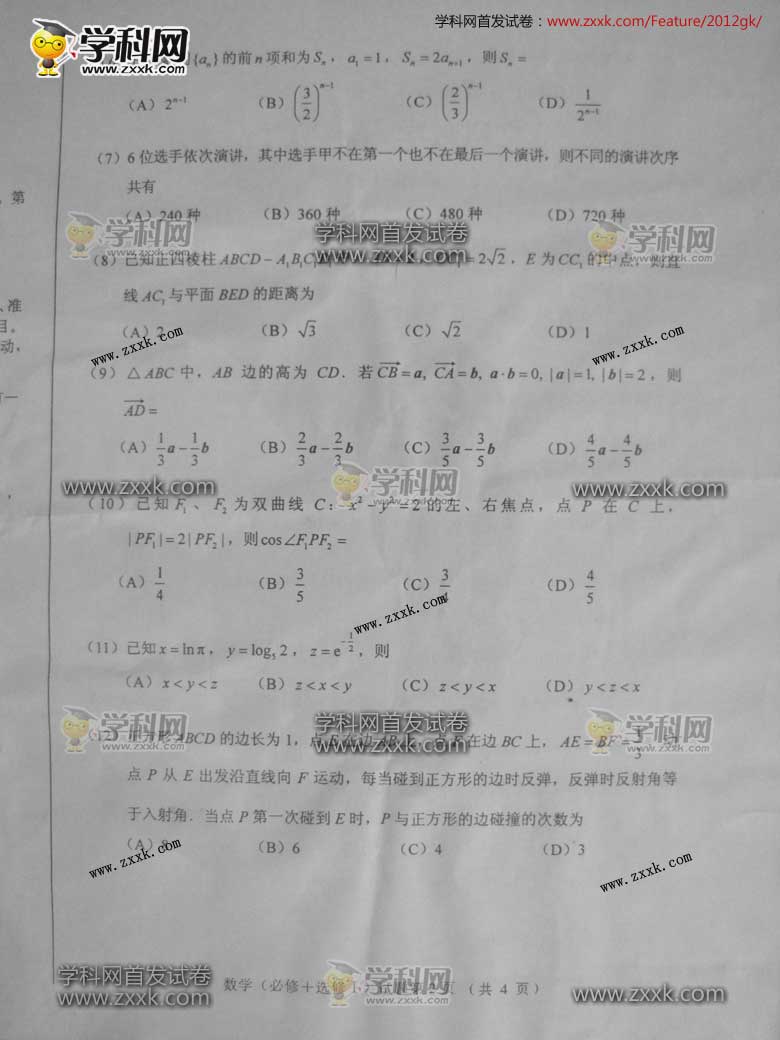 2012高考文科數學真題及答案(大綱全國卷)(2)