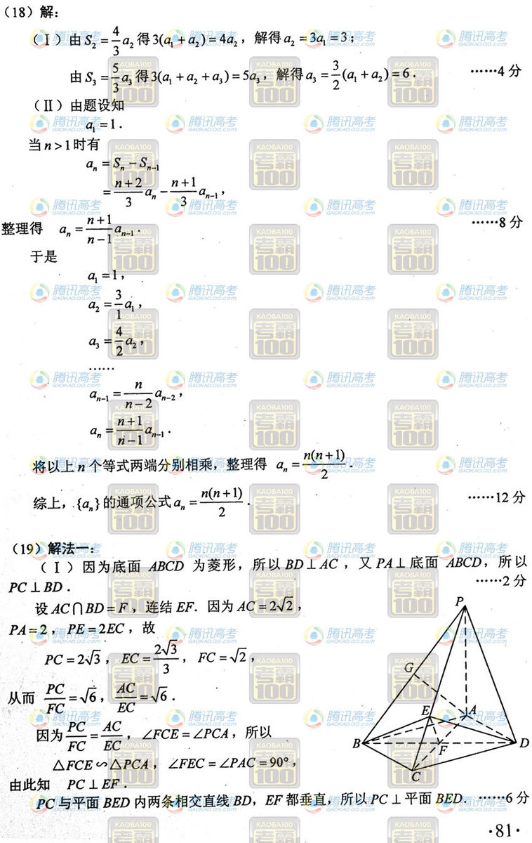 2012高考文科數學真題及答案(大綱全國卷)(6)