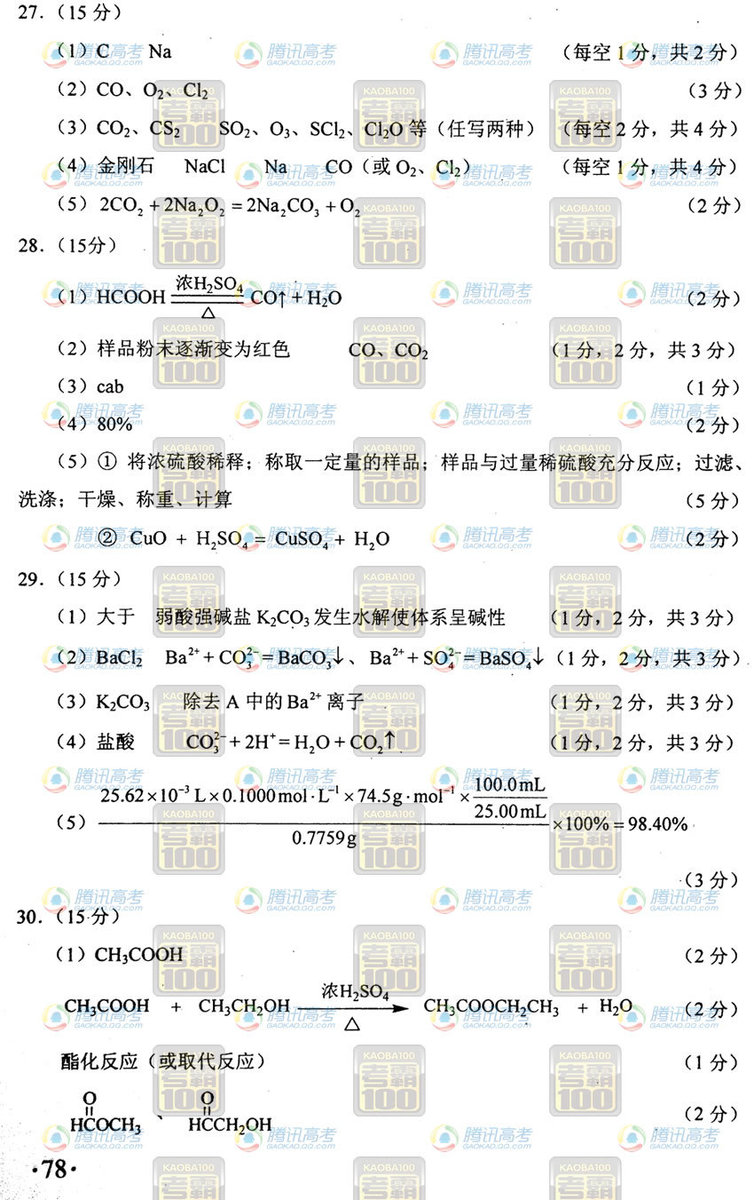 2012年高考理綜真題及答案(大綱全國(guó)卷)(5)