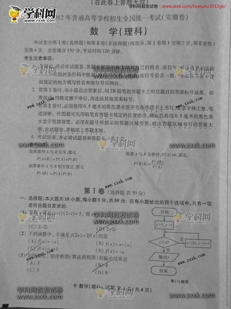 2012年安徽高考理科數(shù)學(xué)真題及答案(圖文版)