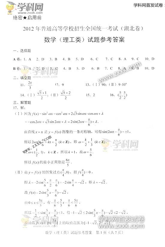 2012年湖北卷A高考數(shù)學(xué)(理)真題及答案(6)