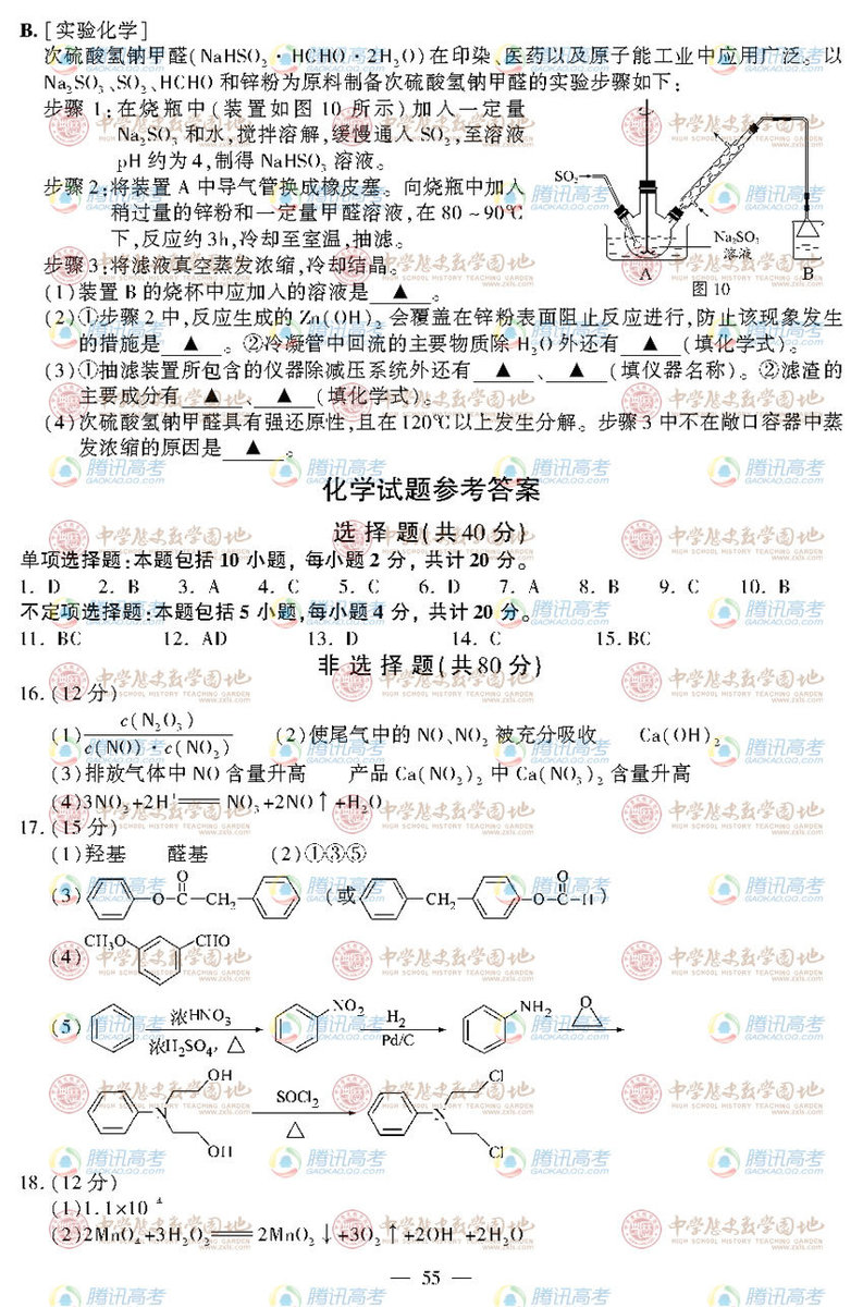 2012年江蘇高考化學(xué)真題及答案公布(7)
