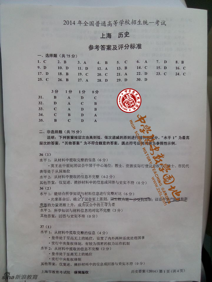 2014年高考上海歷史試題及答案(高清圖片版)(11)