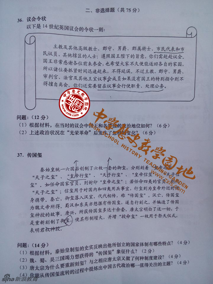 2014年高考上海歷史試題及答案(高清圖片版)(8)
