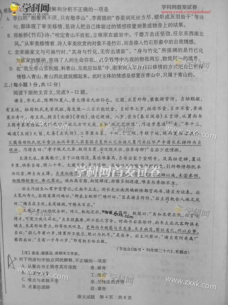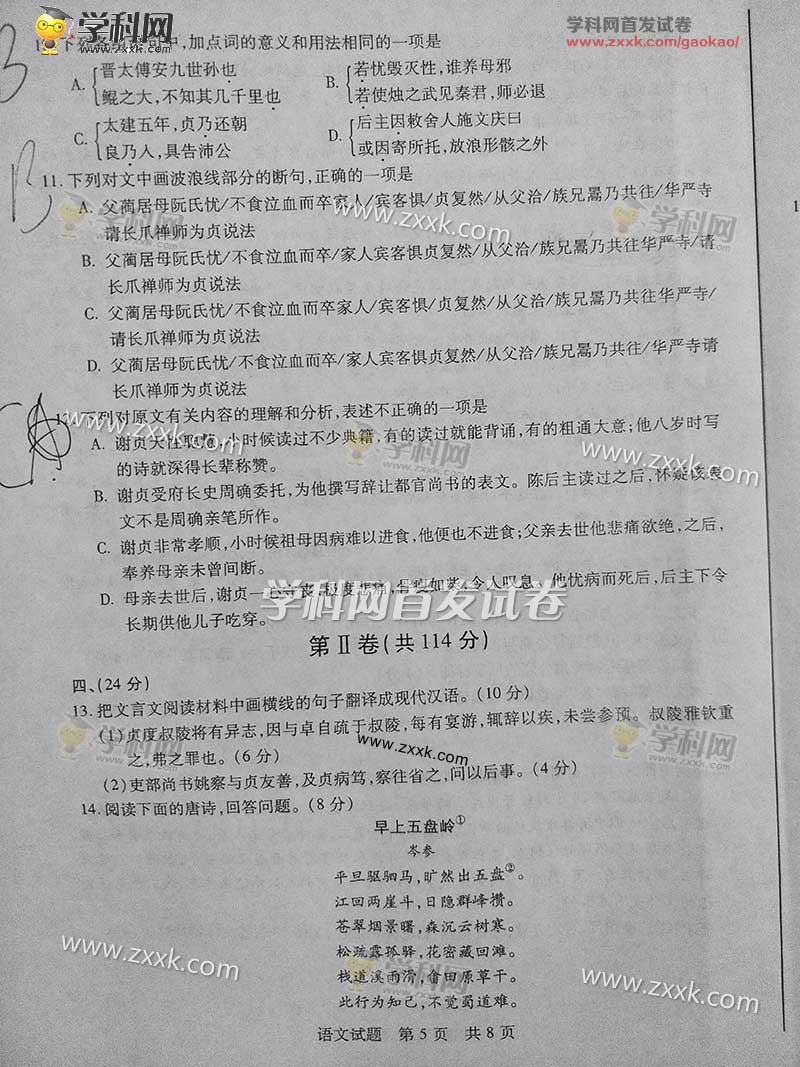 山東語文試卷