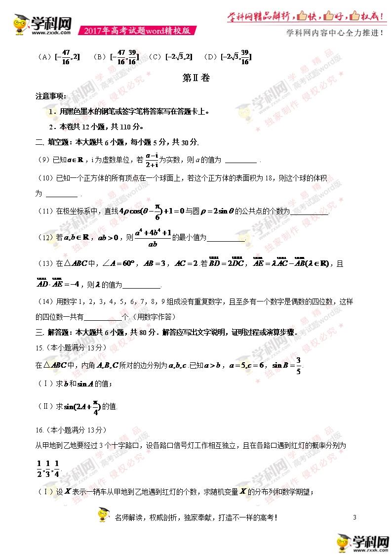 2017年天津高考理數真題及答案(3)