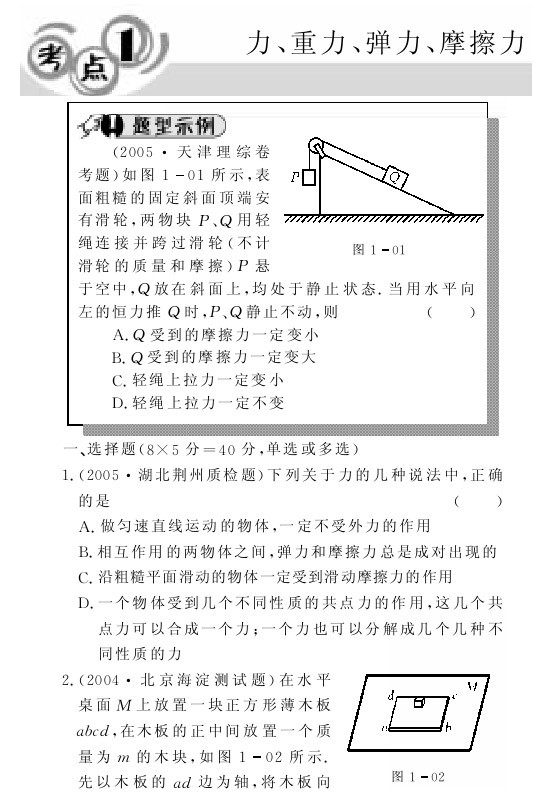 高考雙測(cè)物理:力 重力 彈力 摩擦力