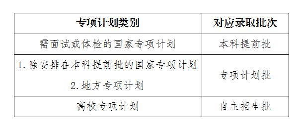 三類專項計劃設置在不同錄取批次,考生填報須細分