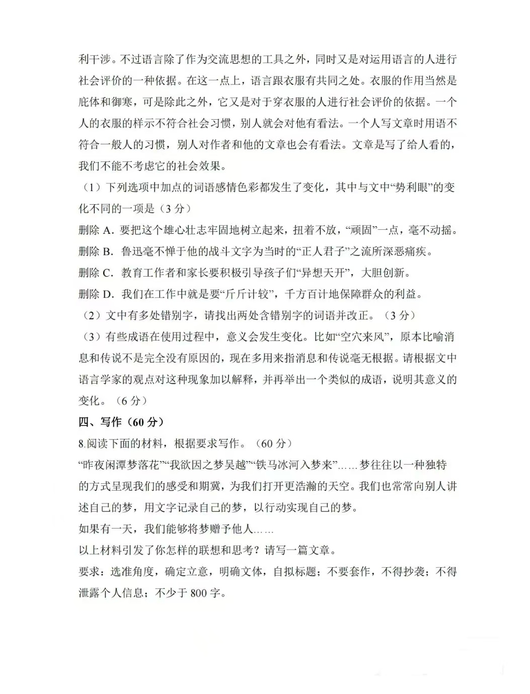 要求:選準角度,確定立意,明確文體,自擬標題;不要套作,不得抄襲;不得泄露個人信息;不少于800字。