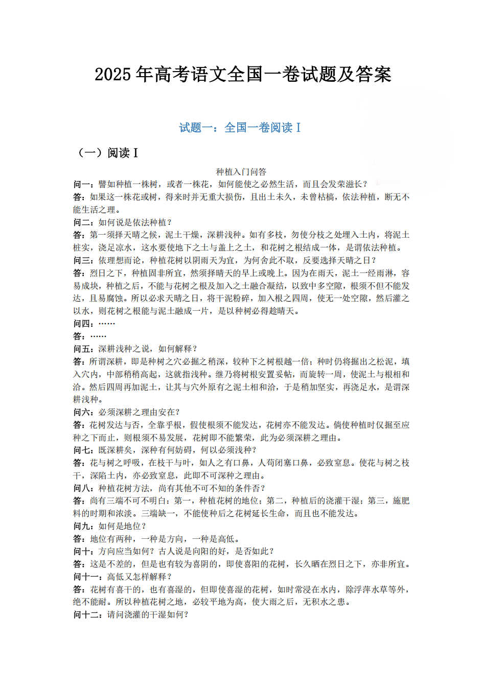 一般來說,高考試卷及官方答案會在高考結束后的一至兩周內公布。但由于時間緊迫,許多考生想早點著手準備高考志愿填報,所以為幫助各位考生預測高考成績,本文中的試卷答案是根據考生考后回憶、網上搜集而成的,僅供參考。
