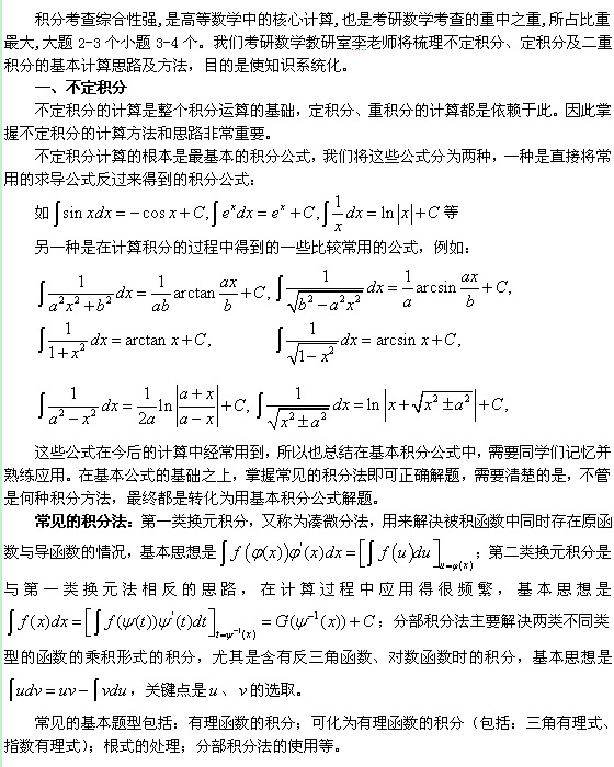以下是為各位考生整理的2014年考研數學高數中的重點:積分的計算,供大家參考: