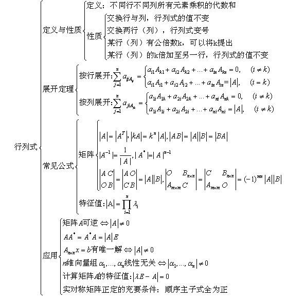 2014年考研數(shù)學(xué)線代知識體系:行列式