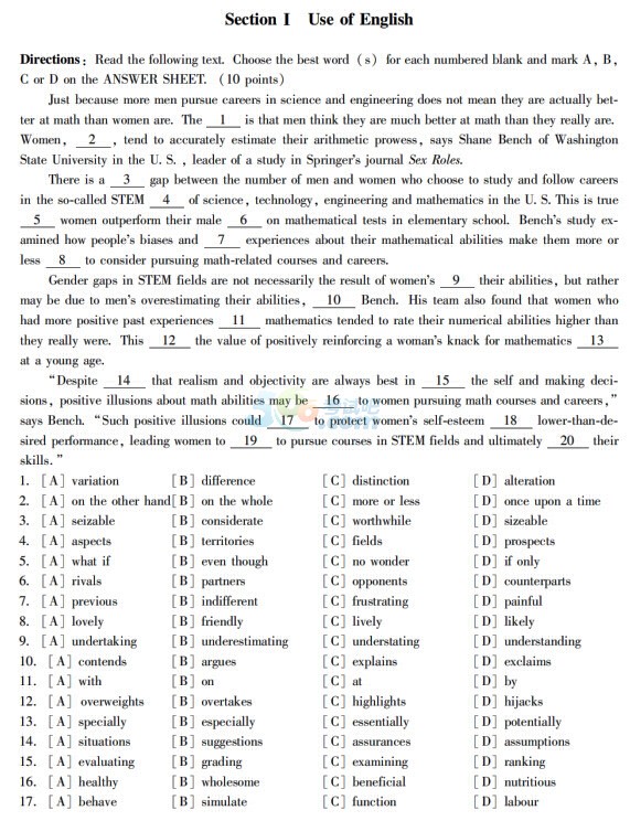 距離2016年考研還有不到20天的時間,在此我們為大家提供一份2016考研英語一試題預測并附上答案,以供參考。