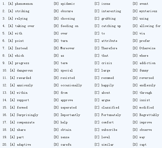 16 , mobile technology causes symptoms less severe than physiological diseases. There are even benefits to 17 sufferers for shortened attention spans and the caffeine overload triggered by visits to Starbucks for the free Wi-Fi. Most importantly, you can 18 the Financial Times in places as remote as Alaska or Sidcup. In this 19 , a mobile device is closer to a symbiotic organism than a parasite. This would make it 20 to an intestinal bacterium that helps a person to stay alive, rather than a virus that may kill you.