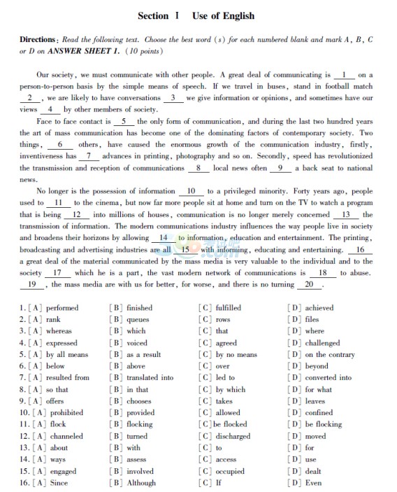 距離2016年考研還有不到20天的時(shí)間,在此我們?yōu)榇蠹姨峁┮环?016考研英語二試題預(yù)測(cè)并附上答案,以供參考。