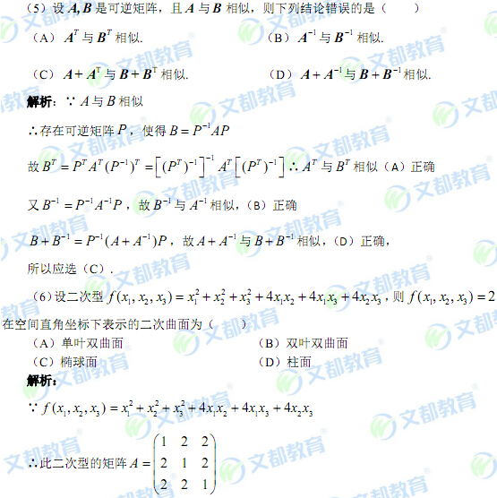第(5)題考查了相似矩陣的概念及性質;