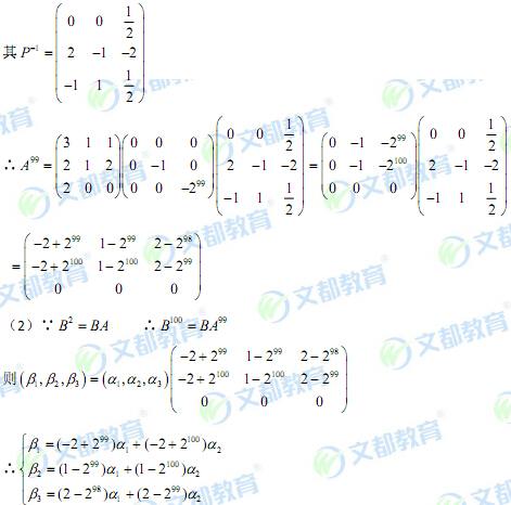 第(21)題考查了用相似矩陣的方法求方陣的冪及向量組線性表示的概念。