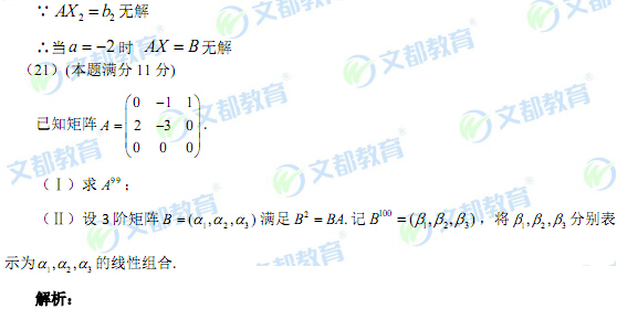 第(20)題考查了方程組有解的條件及求解矩陣方程,求解線性方程組;