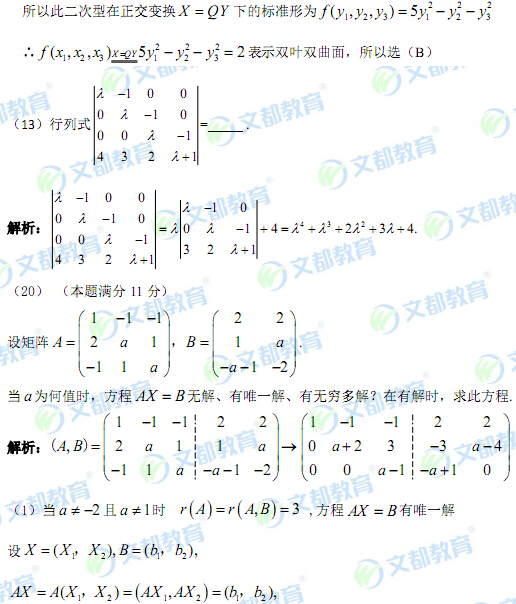 2016考研數學一線性代數題目考點分析及試題答案