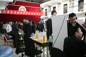 2008年10月31日,北京應(yīng)用技術(shù)大學(xué)學(xué)工部主辦的校園招聘會(huì)在二辦公區(qū)大廳內(nèi)火熱進(jìn)行。來自清華同方、Lenovo聯(lián)想、用友致遠(yuǎn)軟件、中國(guó)移動(dòng)、中科軟通、北京華電園信息技術(shù)有限公司、東方家園、宏圖三包、千龍網(wǎng)、勞動(dòng)協(xié)會(huì)研發(fā)中心、中國(guó)數(shù)碼、中國(guó)汽車人網(wǎng)傳媒公司、北京向?qū)r(shí)空科技公司、北京自由計(jì)調(diào)網(wǎng)、唐星生物科技公司等三十余家用人單位進(jìn)校招聘。北京應(yīng)用技術(shù)大學(xué)有800余人應(yīng)屆畢業(yè)生,參加了200多個(gè)職位的競(jìng)聘。
