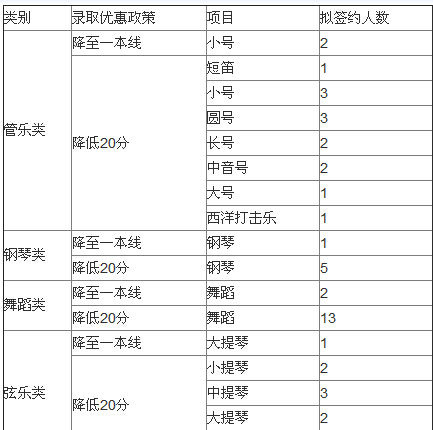我校2016年高水平藝術團招生計劃29人,擬簽約人數58人,各招生項目擬簽約人數如下:
