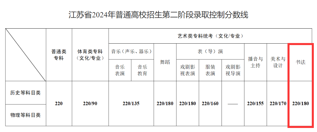 江蘇高校招生為大家整理的是江蘇2024年書法高考分數線,包含本科和專科,希望對大家有所幫助。