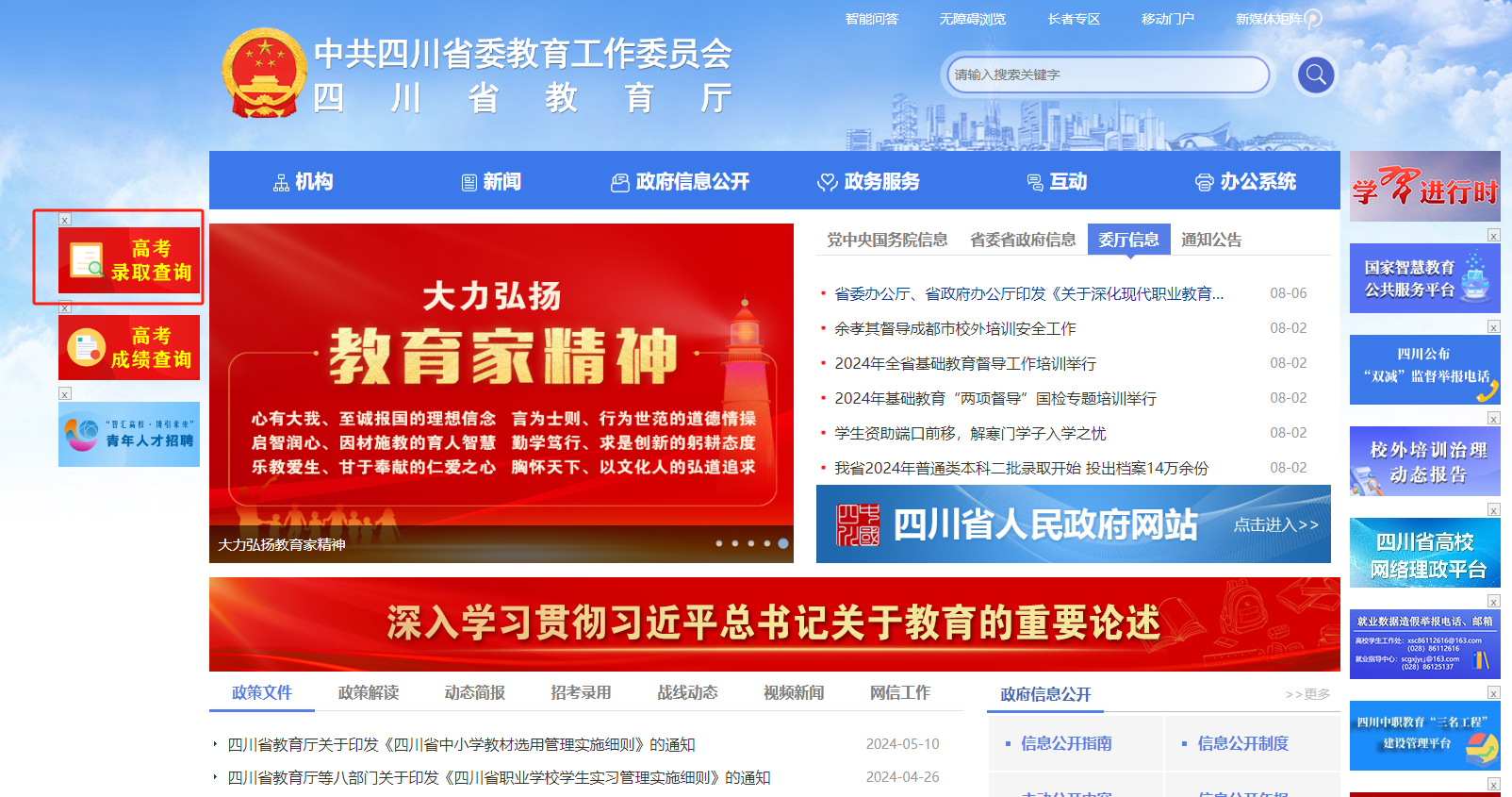 網址入口:http://edu.sc.gov.cn/