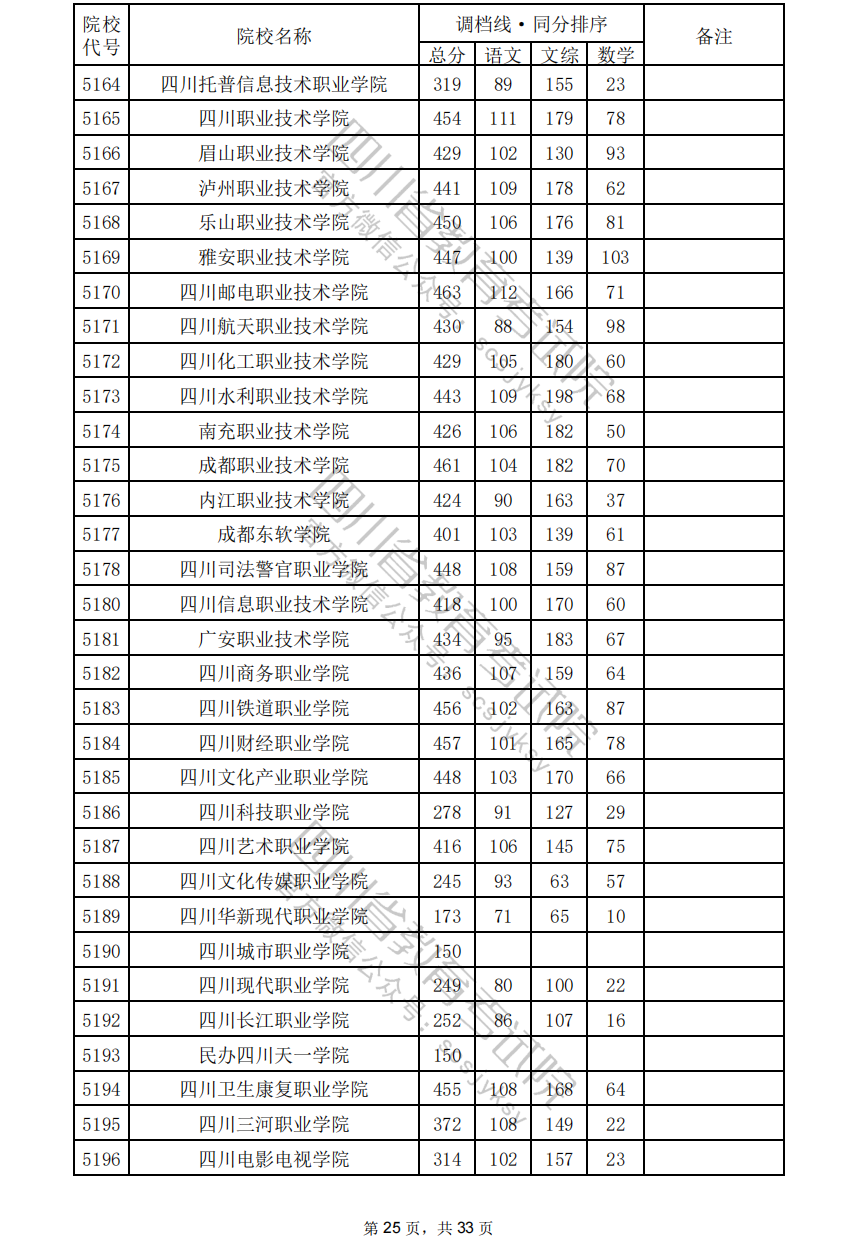 2024年四川高考專科批調檔線(含文科+理科分數匯總)