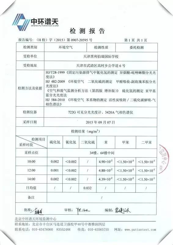 伴著一年一度的秋季開學,黑利伯瑞國際學校的年度環境質量檢測報告也隨之出爐。自天津8·12事故之后,人們對空氣質量與安全一直存在疑問,各學生家長對孩子所處學校的環境質量的關注程度也空前的高。鑒于此,本文特呈現此次檢測報告結果。