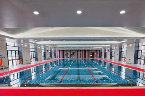 為配合大型戶外活動設施,體育館中包含25米泳道的游泳池,室內健身房,舉重室,乒乓球館以及更衣室。
