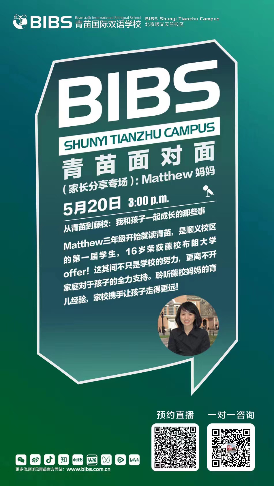 青苗國際雙語學校是北京學生家長們非常關注的一所國際學校,學校可以為3~18歲學生提供幼兒園到高中的一貫制教育。現在正值家長們選擇教育和擇校的關鍵時間點,對于擇校和孩子未來教育迷茫,或者想要了解被美國常春藤名校錄取的學生教育經歷的,可以關注青苗國際雙語學校近期將會開展的線上直播會議,會議內容,直播時間見下圖: