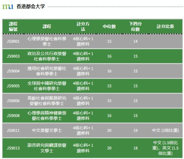 從上圖統計的香港八所大學錄取分數線看,這八所大學采用了不同的計分方法,其中香港大學、中文大學、科技大學、理工大學會視「5**」為8.5分,而城市大學、浸會大學、教育大學等則只有7分(見下圖)。因為計分方法的不同,所以學校間的分數線不同。
