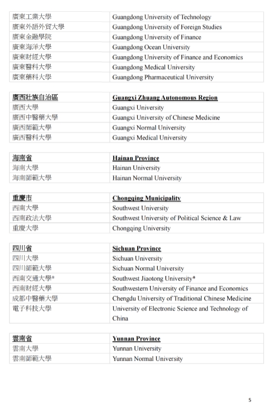 新增的六所院校分別為香港科技大學(廣州)、華南農業大學、浙江工業大學、紹興文理學院、西南交通大學、西北工業大學。其中,西南交通大學和西北工業大學為211、985高校。
