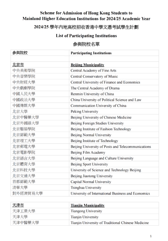 香港DSE高考成績可報考的內地院校增加到138所,附北京DSE課程開設學校情況