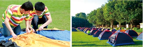 消防演練:現(xiàn)場模擬地震、火災、臺風等自然災害,學會營救與自我營救 學習露營術:學習選擇露營地點、如何搭帳篷、防止動物昆蟲。 學習戶外技能:繩索術、路標、學習辨別方向、繪制地圖、使用指南針、水源選取