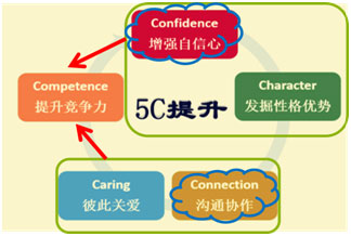1、5C綜合提升:自信(confidence)、溝通協作(connection)、關愛(caring)、競爭力(competence)、情緒(character)
