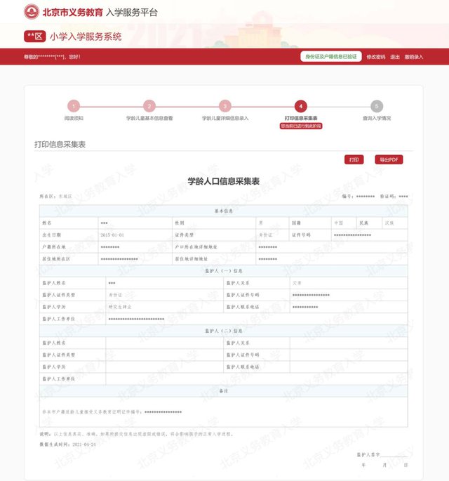 1.打印出來的信息采集表是到小學報名時的必備材料;