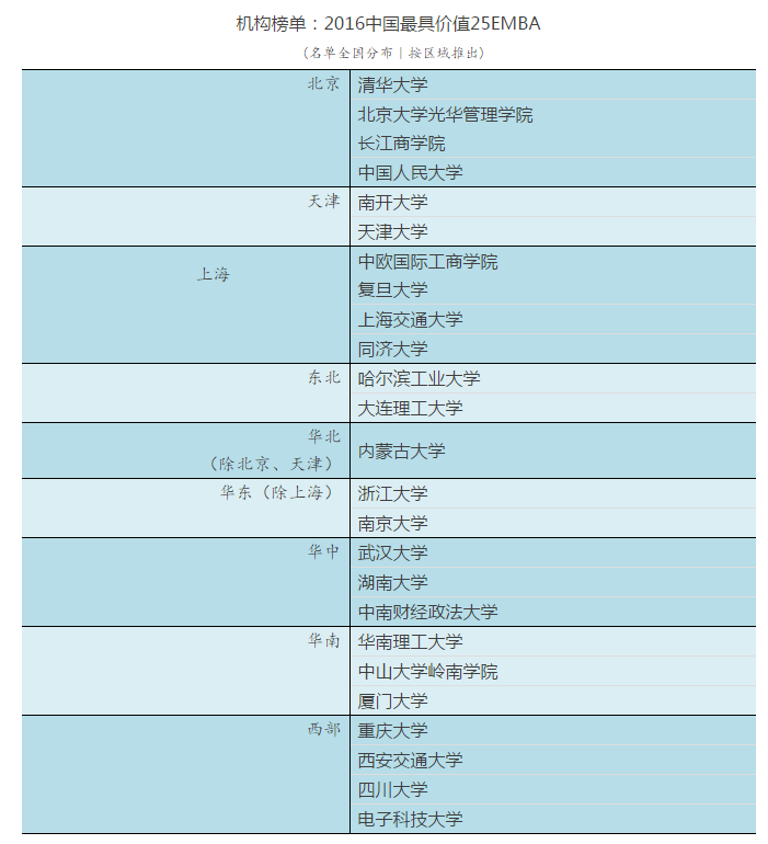 2016年中國人民大學EMBA榮獲中國價值25EMBA,成為北京地區上榜四院校之一,具體通知如下: