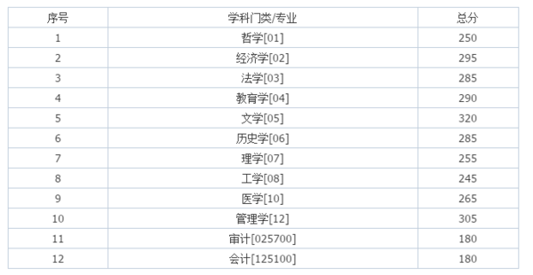 三、少數民族骨干計劃考生復試資格線為: