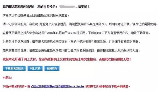 點(diǎn)擊填報(bào)完畢之后,你會(huì)看到這個(gè)加紅加粗的提示文字: