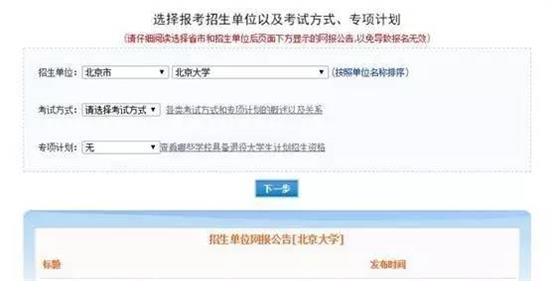 選擇了其中某個(gè)報(bào)考單位后,頁面長(zhǎng)這樣(以北京大學(xué)為例):